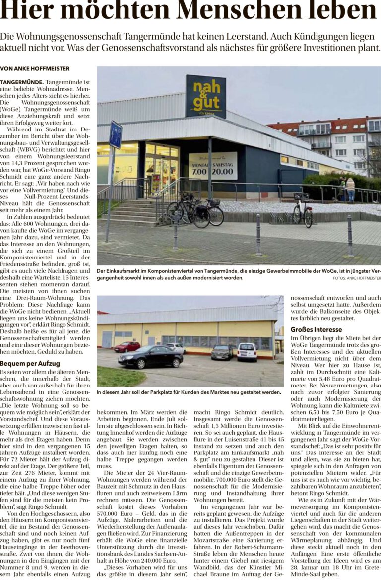 Sie wollen eine Wohnung mieten in Tangermünde – dann sind Sie hier genau richtig bei Ihrer Wohnungsgenossenschaft in Tangermünde.